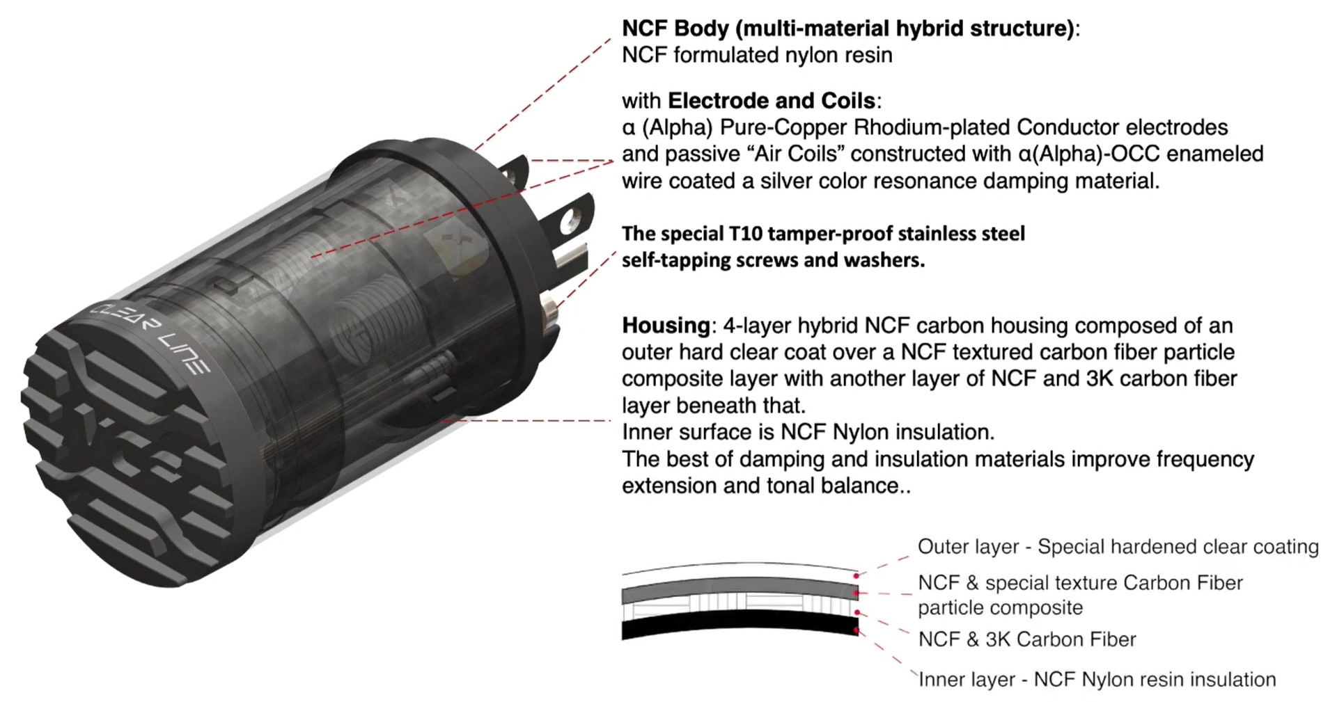 The NCF Clear Line Optimizer simply takes your listening and viewing experience to the next level. Find out for yourself. It Improves resolution, focus and 3-dimensionality of performance.