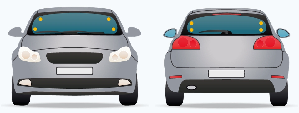 Glue 4 Nuggets from the inside into the corners of the front and rear window. Please pay attention to a dust and fat-free surface. Clean the windows thoroughly with a good glass cleaner before sticking on, so that the Nuggets stay in place permanently. The adhesive areas should also be free of paper. If necessary, the Nuggets can be replaced and glued again. Long-term use is therefore guaranteed.
