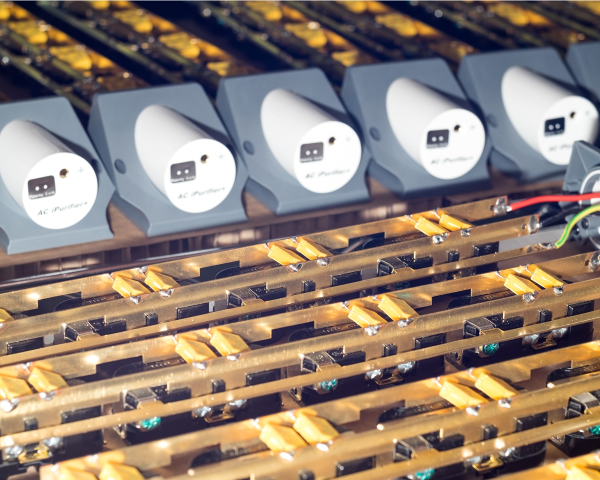 iFi PowerStation is equipped with the completely renewed Active Noise Cancellation II. iFi ‘reverses’ the network pollution to actively eliminate it. This technology is similar to the way noise cancellation from headphones work. With this, iFi Audio achieves a noise reduction of -40 dB. After this, the mains voltage is also passively filtered at every connection, so that high-frequency network pollution from one of the connected components is not distributed via the mains plugs.