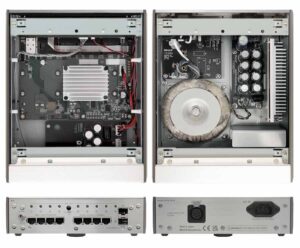 • Audiophile techniques are used in the power supply implementation with a bank of audio-grade capacitors to ensure the lowest noise environment. Power supplies are external to the S10 in the from of a dedicated toroidal transformer power supply in matching casework, giving exceptional isolation.