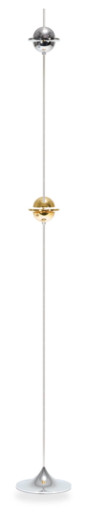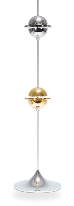 2. Slide the gold Vibratron onto the stand, adjust its position so that it’s at eye/ear level when listening to the system, and lock into place with the set screw and included wrench.