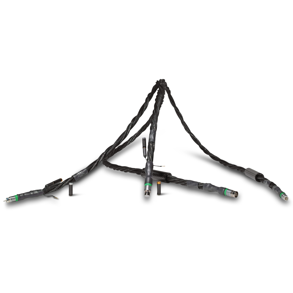 AES/EBU is built from 9 separate geometries running in parallel consisting of (1) Galileo Digital Silver Matrix geometry, (2) UEF digital Silver Matrix geometries, (2) Hand crafted Pure Silver AirString geometries, (2) Hand crafted Pure Tungsten AirString geometries, (2) Hand crafted Pure Copper AirString geometries. All 9 geometries are individually sheathed to cancel resonance and improve flexibility.