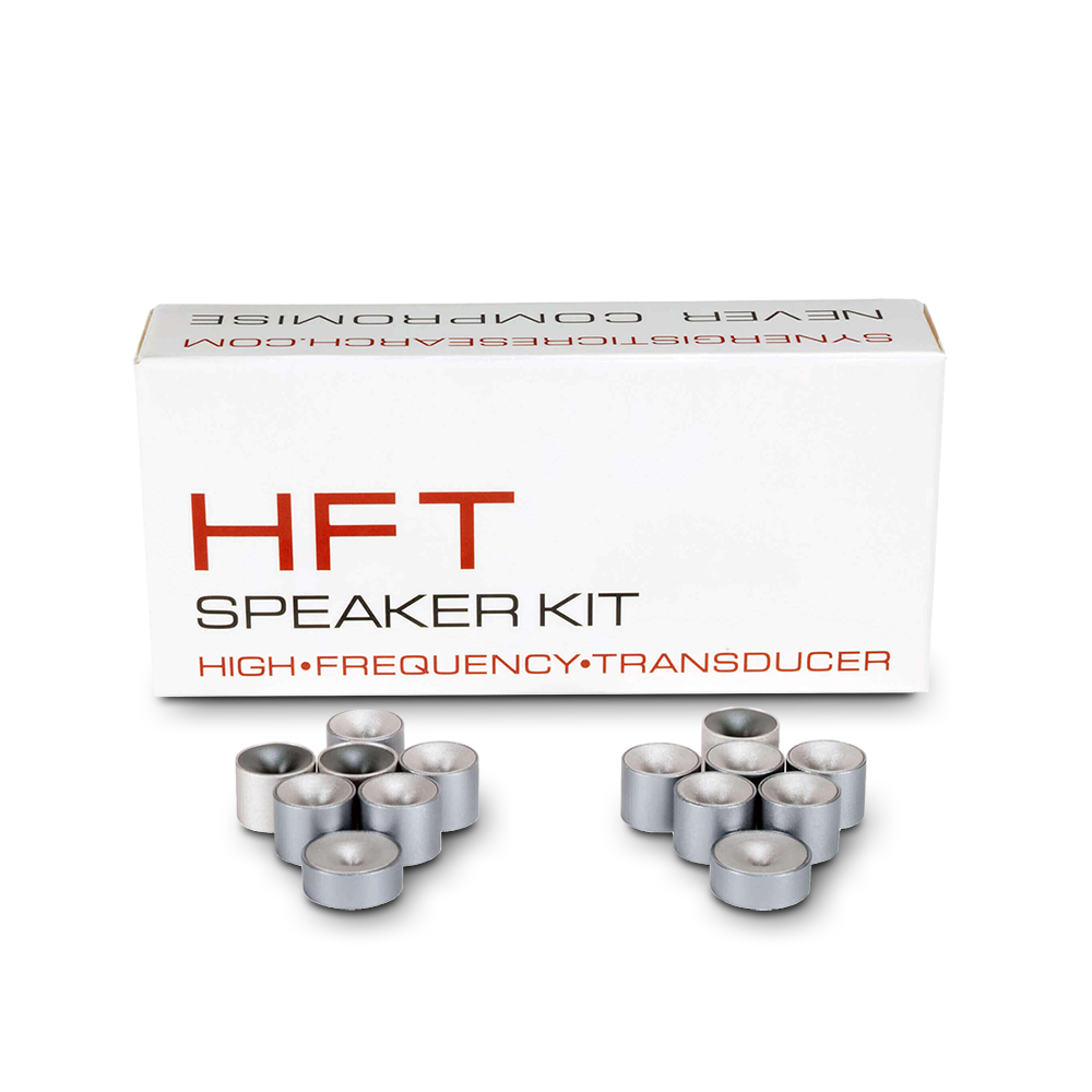 HFT Speaker Kit MkII dramatically improves your speakers ability to disappear and enable a sonic presentation that is tonally accurate, with the spatial realism and emotional immediacy the music was meant to convey in a way that goes beyond what is believed possible. With six types of precisely tuned HFT (up from three) featuring faster activation and tighter phase alignment, the breakthrough lies in a new controlled asymmetric deployment where each of the seven positions is independently tuned to complement the others in ways symmetric placement never could achieve. The result transcends what seemed possible: instruments bloom with greater body and truth, vocals hang with stunning presence, and recordings scale effortlessly from intimate ensembles to large orchestras – delivering not just better sound, but sound that feels completely right.