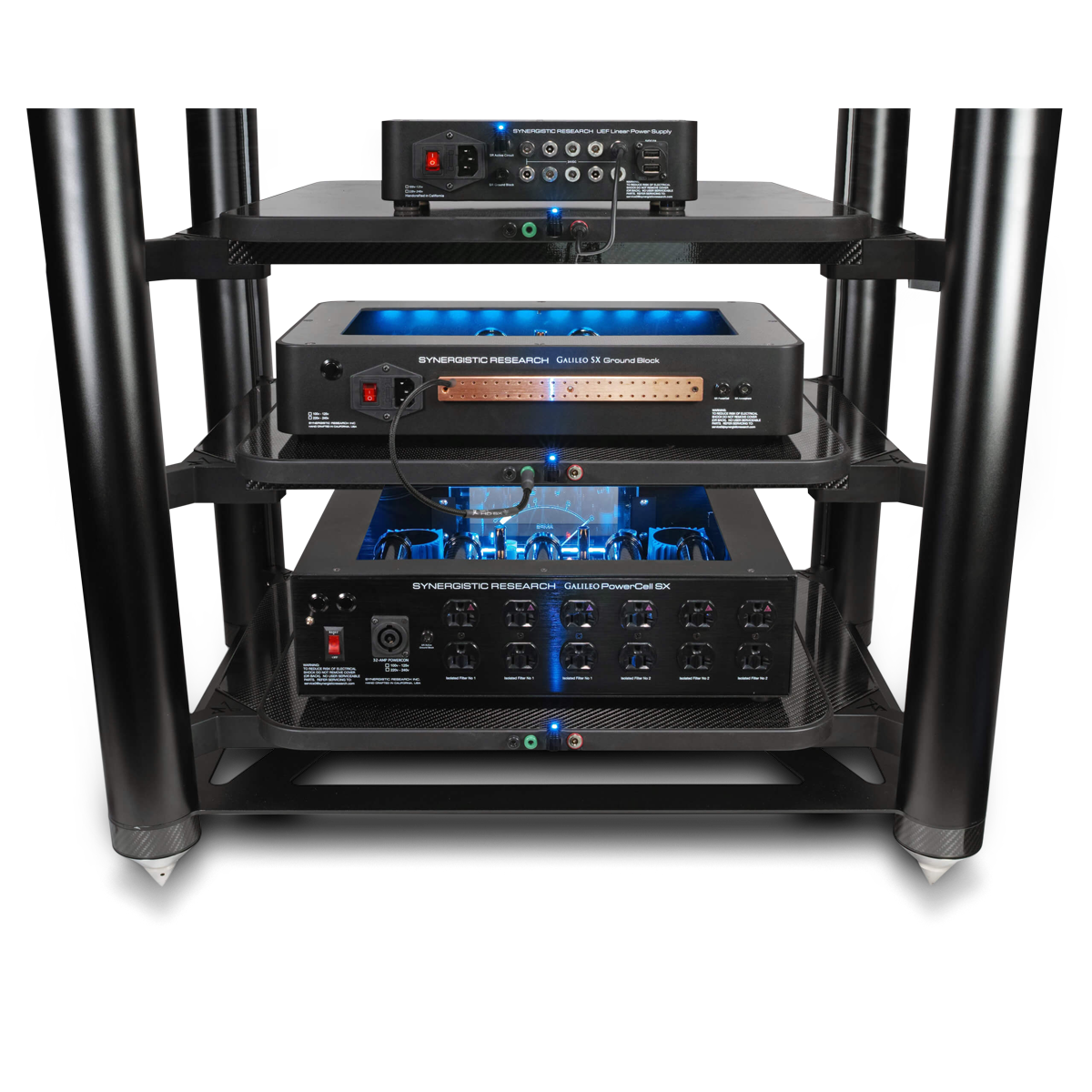 To create the perfect EM environment for your components, Tranquility Pods, Tranquility Bases and the Tranquility Rack can be grounded to a Galileo SX Active Ground Block for a significant drop in your system’s noise floor with a dramatic increase in soundstage scale.