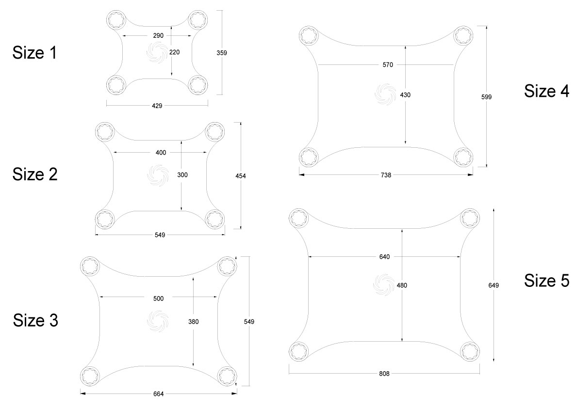 Seismic Podium type/load capacity ( A – F = Size 1 – 6)